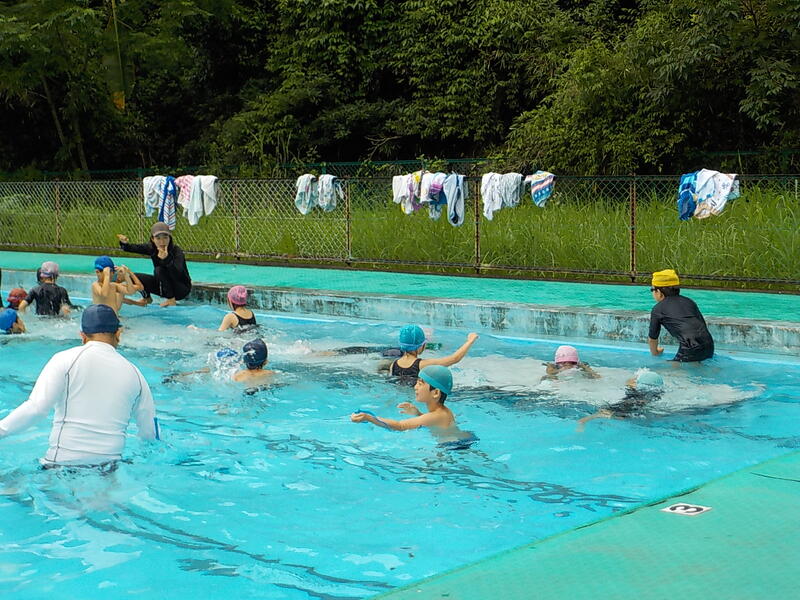 他の学年の子供たちもプールの中で笑顔がはじけていまし