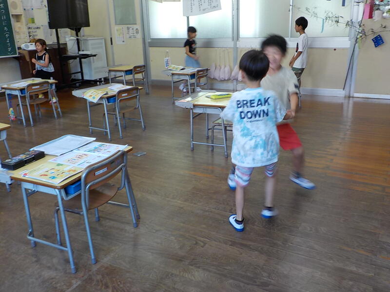 「夏休みには何をしたの?」「昨日、何を食べた?」など、子供たちはお互いに英語で聞き合っていました! 昨日は唐揚げを食べた人が多かったみたいです
