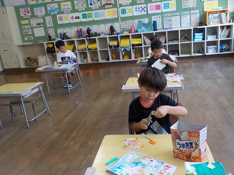 1年生は図工で「うきうきボックス」を作っていました!