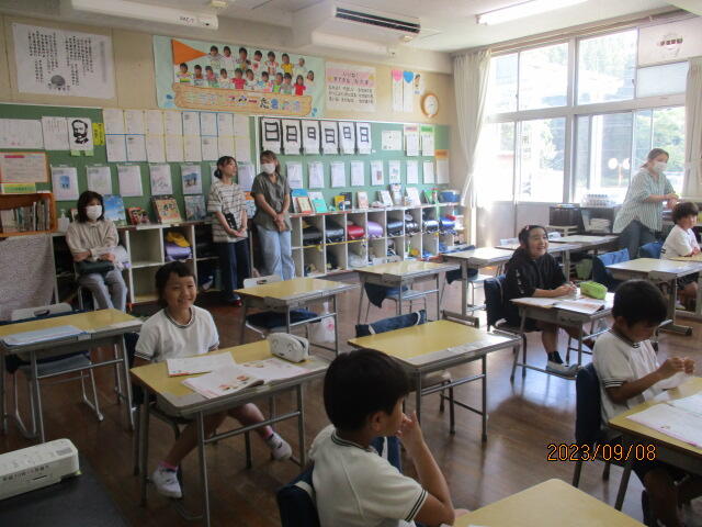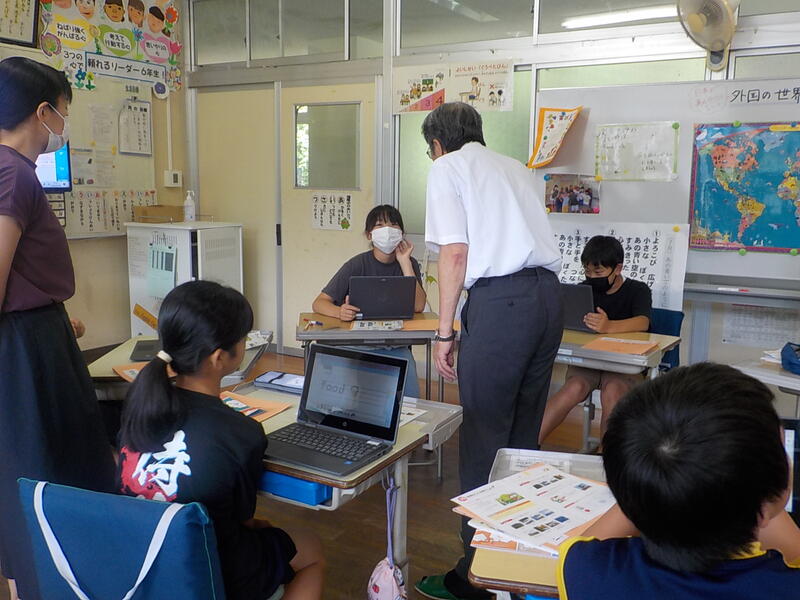 今日は、教育委員会から木屋指導主事にも来ていただきました。先生方に質問しながら一生懸命英作文していた6年生です!