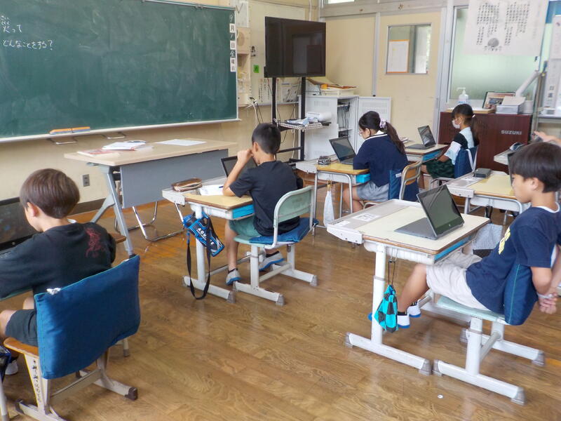 4年生は、インターネットを使って「防災」について調べていました。静かに頑張っていましたね!