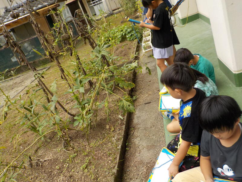 3年生は、花がさいた後の植物のようすを観察しました! ホウセンカは一度枯れたあとに落ちた種が、また芽を出していました! 気づきを文章で書いたり写真に撮ったりして、勉強を頑張りました