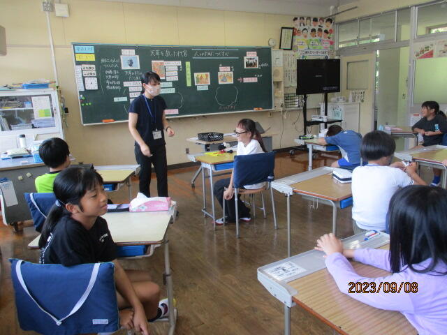 2年生は「未来の好きなことをしている自分」の絵を、3年生は「未来の乗り物」の絵を想像して描いていました! いろいろな想像があって、一人一人話を聞くのが楽しかったです! みんなすてきな絵を描いていました