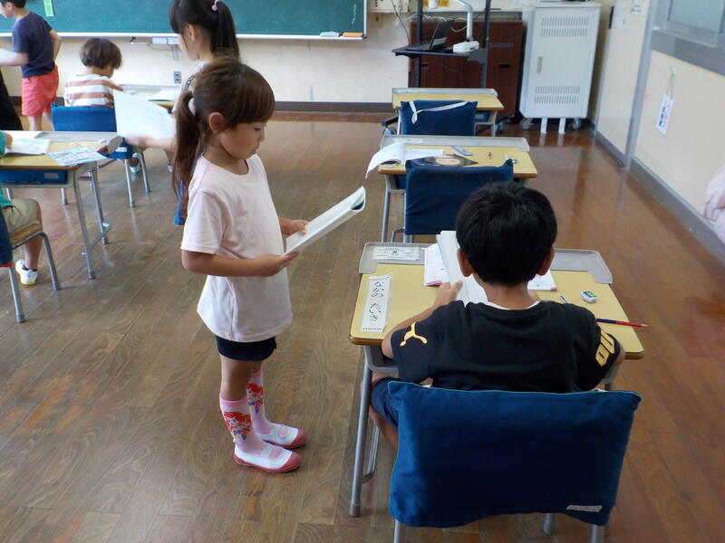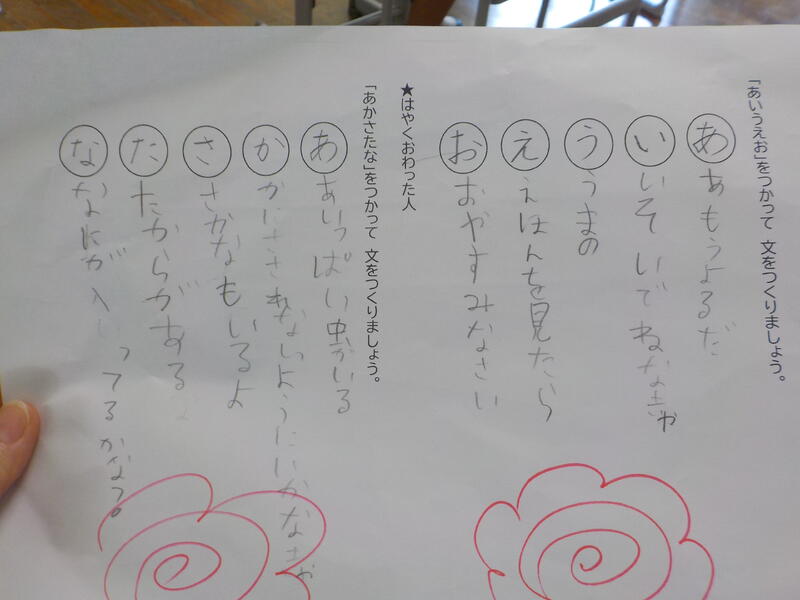 2年生は、国語の時間に「あいうえお作文」をしていました。「見てください!」もってきた作文が上手にできていて、思わずパチリ