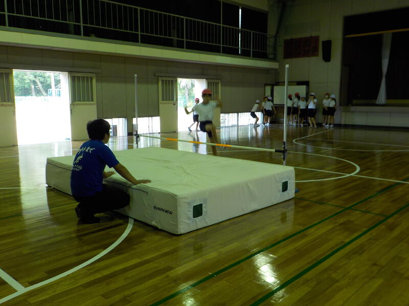 4、5年生は体育館で走り高跳び、6年生は運動場の砂場で走り幅跳びを、それぞれ練習していました! 今日は曇りの天気で、あまり暑くもなく、のびのびと体育の学習ができました