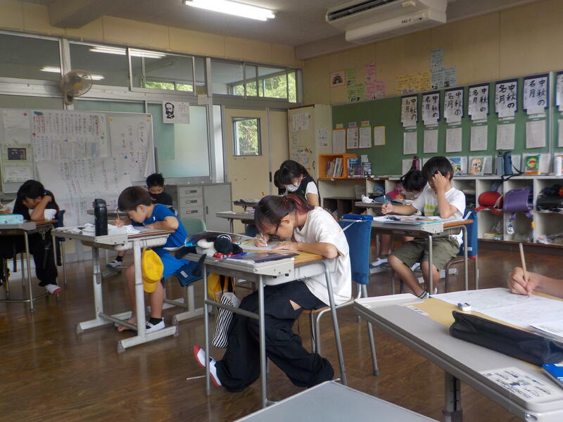 2年生は学習ルームで国語の勉強・・・、みんな姿勢が良かったので、思わずパチリ!