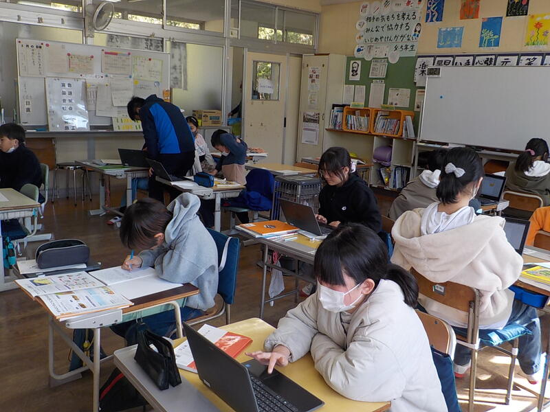 花丸4、5年生は、国語の時間、4年生が作ったアンケートに、5年生が真剣に答えていました!