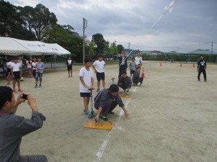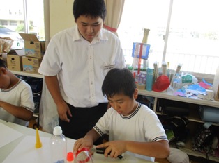 御船高校で「小学生エンジョイプラン~高校生による小学生ものづくり体験~」(3・4年生は紙飛行機、5・6年生はペットボトルロケットの制作と競技大会)を行いました。