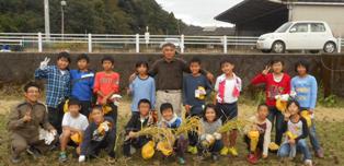 27日(木)午後、数日延期していた稲刈りを、指導していただいている村上さんご夫妻にお世話になり実施しました。田植えの時に植えた稲が黄金色に実った様子は子どもたちにも収穫の秋を実感させたようです。