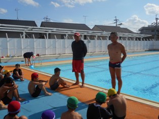 8月25日から30日の放課後、夏休み明けの水泳教室を行いました。今回も県体育協会から町教育委員会(社会体育係)を通じて紹介いただいた平田さん・荒木さんのお二人にも指導に加わっていただきました。平泳ぎ・背泳ぎの2泳法についても学び、子どもたちの上達の早さに驚きました。