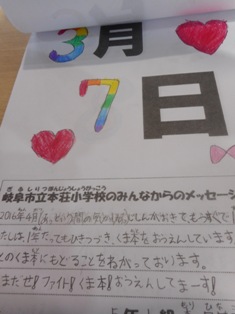 岐阜・本荘小学校から日めくりカレンダーのプレゼント