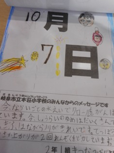 4月の前震の翌日15日(臨時休校の日)は、あいなさんの誕生日でした。担任の先生が学級で誕生日を祝う気持ちが伝わってきます。滝尾小の見回りで行くたびに、黒板を目にして時間の経過と現在の滝尾小の子どもたちのことに思いを重ねてしまいます。あいなさんは元気でがんばっています。