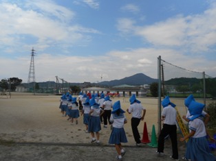 1日「防災の日」、御船中との合同避難訓練を実施しました。昨夜・今朝と最大震度5弱(御船は震度3)の地震があり、テレビの「地震情報」の文字にあらためて不安な思いになりました。