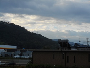 5日(月)午前7時、校長室(御船中)から望む滝尾小の空。