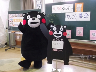 6日(火)、くまもとキッズウィーク(滝尾小では「滝尾っ子いきいき大作戦」期間)の「元気!くまモンけんこう集会」にくまモンが来校してくれました。