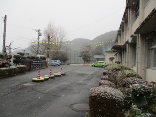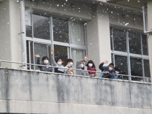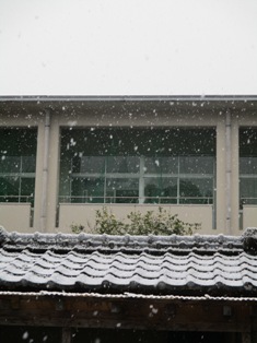 11日(木)、ここ数日の寒波で雪景色が広がっています。子どもたちは雪を楽しんでいます。雪をカップに集めたり、ベランダから雪空を見上げるというのも、九州の子どもぽいかな?とも思います。また、雪雲の中で太陽がうっすらと見えるのも幻想的です。