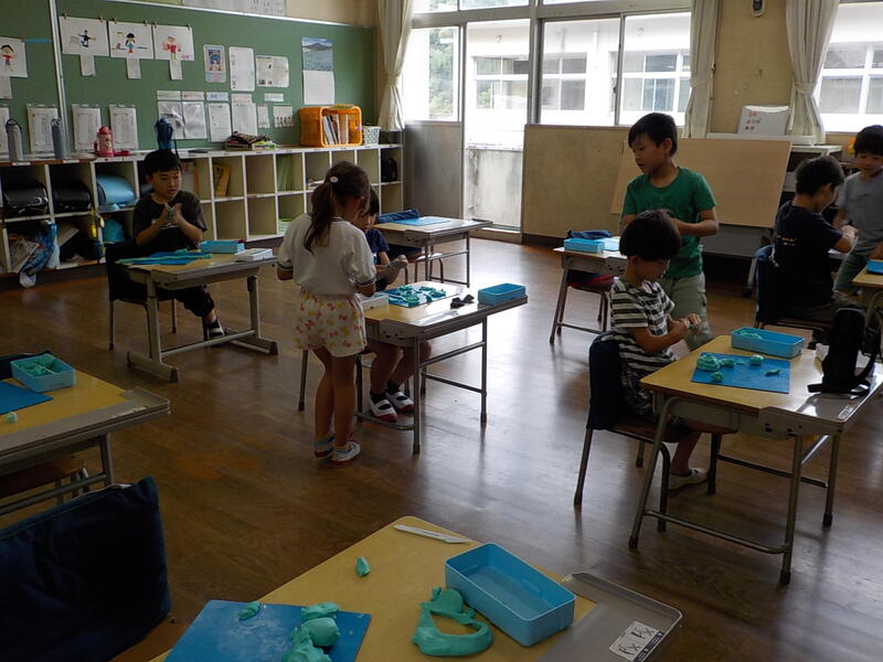 2年生は、図工で粘土遊びをしました! いろいろな種類のお店屋さんになって、お友達や先生をお店に招待してくれました