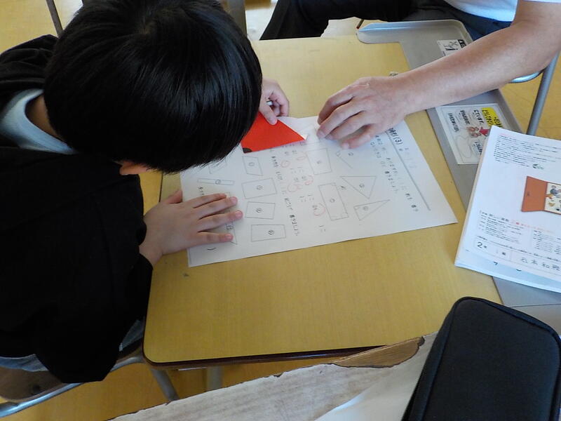 2年生は、図形の学習をしています! 三角形や四角形の図形の中から、直角を見つけていました