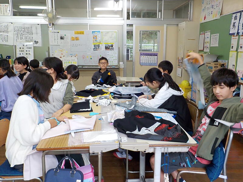 同じ教室で、5年生の家庭科のアドバイスもしながら、さすが6年生です!