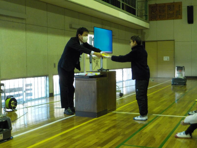 学年の代表で修了証をもらっているところ