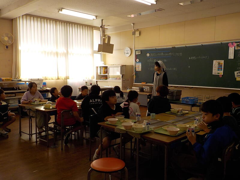 給食の時間に、給食センターから栄養職員の西岡先生、宮﨑先生が来られました! 給食をどんな思いで作っているか、栄養の話など、たくさん話していただきました! 感謝していただく気持がさらに高まりました