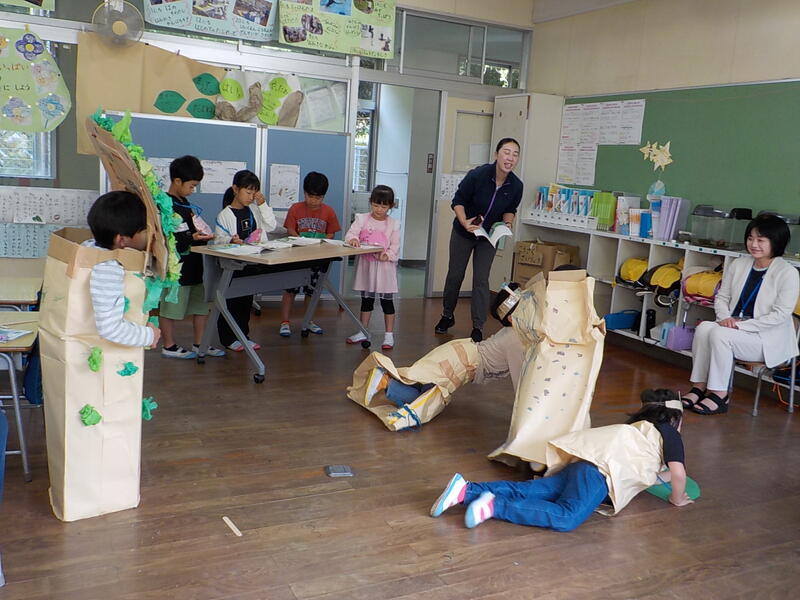 1年生は、国語の時間に「やくそく」の音読劇を校長先生に披露していました! とても褒めてもらいましたね