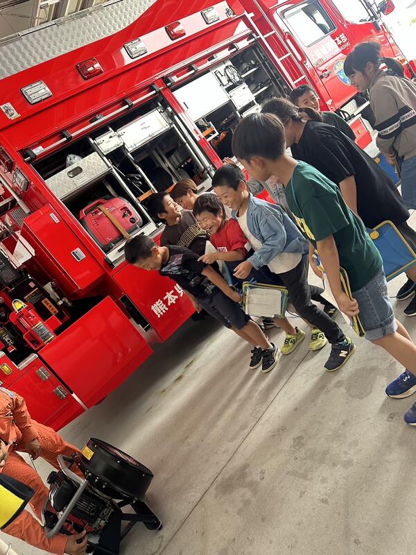 消防署では、真剣にお話を聞きました! 写真を見ると、笑顔もいいですね!