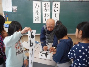3年生~6年生の『命の食育書道展』出品に向け、御船町・本田教育長先生に指導を受けています。先生方にとっては習字指導を改めて学ぶ有意義な機会だと感じています。子どもたちが真剣に運筆する姿はとても心地よい時間です。