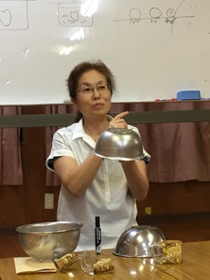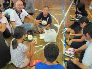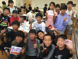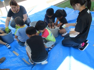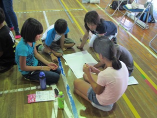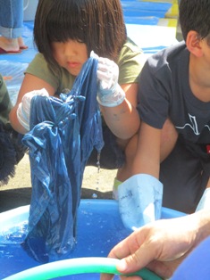 今年は8日(金)の午後に藍染体験を行いました。自宅で輪ゴムや割り箸、蝋などで模様づくりを親子で行ったという話も聞かれ、できばえが楽しみです。