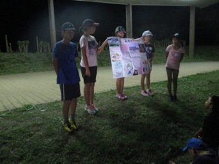 滝尾小での交流会の様子は熊本放送の夕方のニュースで放映され、東山小・本荘小の子どもたちとキャンプ場で見ることもできました。