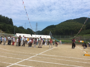 10日(日)、水越地区の運動会に出向きました。旧水越小7区の地域の皆さんのすばらしい取組だなぁと感じました。旧水越小にかけつけた子どもたちも地域の皆さんと楽しい一日を過ごしていました。