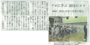 12日(火)午後、文化庁「文化芸術による子供の育成事業」によるミュージカル『星の王子様』(東京演劇集団「風」)のワークショップが行われました。