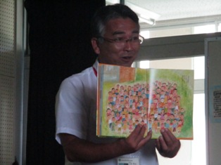 今回の集会では、6月の集会で読み聞かせした『ひまわりのおか』の宮城・大川小学校の被災について話しました。