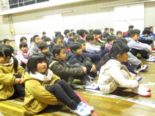 集会では、給食委員会の『給食番長』の劇発表と櫛山栄養教諭による給食センターの紹介(調理・配送のビデオ)が行われました。感想発表した子どもたちからは「給食を残さないで食べたい」「センターの仕事の様子がわかった」等の声が聞かれました。