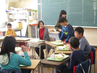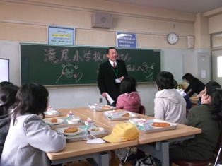6日(火)、11月に実施したミュージカル『星の王子さま』で公演いただいた劇団「風」の白根さんと栗山さんが来校されました。子どもたちと給食を一緒に食べてもらいましたが、子どもたちは『星の王子さま』のことを思い出したりして話が弾んだようです。