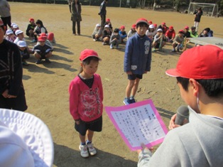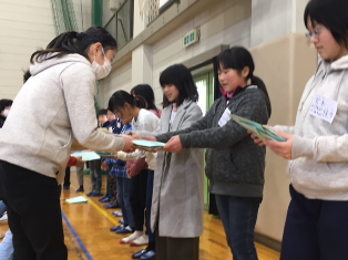 8日(木)2校時に全校縄跳び集会が行われました。短縄跳び、長縄跳びなどが行われ、各部優勝として1年生・4年生・5年生が児童会・体育委員会から表彰されました。寒さの中でも練習を続けてきた成果が出せたと喜ぶ声が聞かれました。
