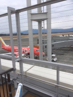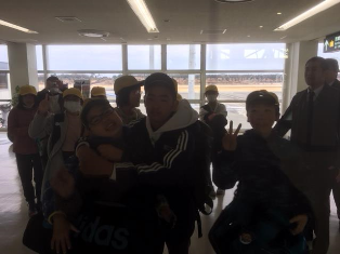 5年生が2月9日・10日(金・土)、愛知・岐阜ぼうさい交流会に出発しました。1日目は岐阜・本荘小学校での交流活動と岐阜市内観光、2日目は名古屋の東山動物園見学と名古屋大学減災館での学習会の予定です。熊本空港の写真は、カラス窓越しのものです。