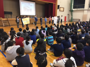 今回のプログラムを提供いただいたレスキュー・ストックヤードの浦野さんから送られてきた写真を一部紹介します。本荘小での熊本地震の体験発表は、本荘小の子どもたちや先生方の心に共感をもって受け止められたようです。若干緊張している表情?も伝わってきます。詳細は、後日あらためて学校便り『あけぼの』でお伝えします。