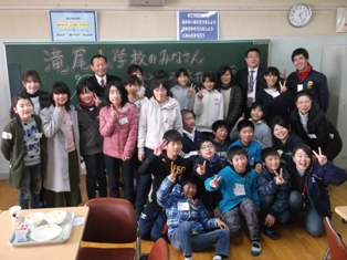 2日(金)、滝尾幼稚園・たんぽぽ園の豆まきに1年生が参加しました。例年、本校1年生が鬼役として訪問して交流を続けています。園児たちに囲まれて、1年生は1年前の自分を思い出し成長も感じられたようです。