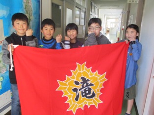 新役員の5年:上田くん・渡邉さん・清水くん、4年:上田さん、梅木くん、児童会のリーダーとしてのがんばりを期待しています。