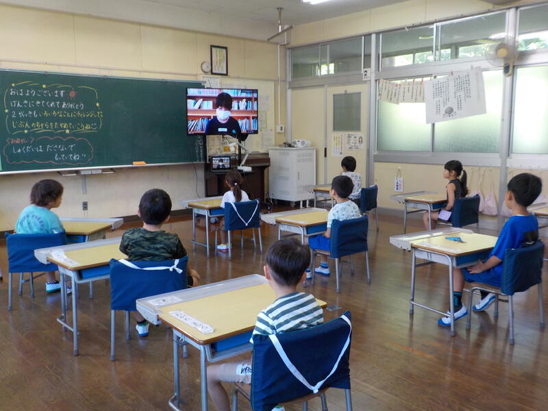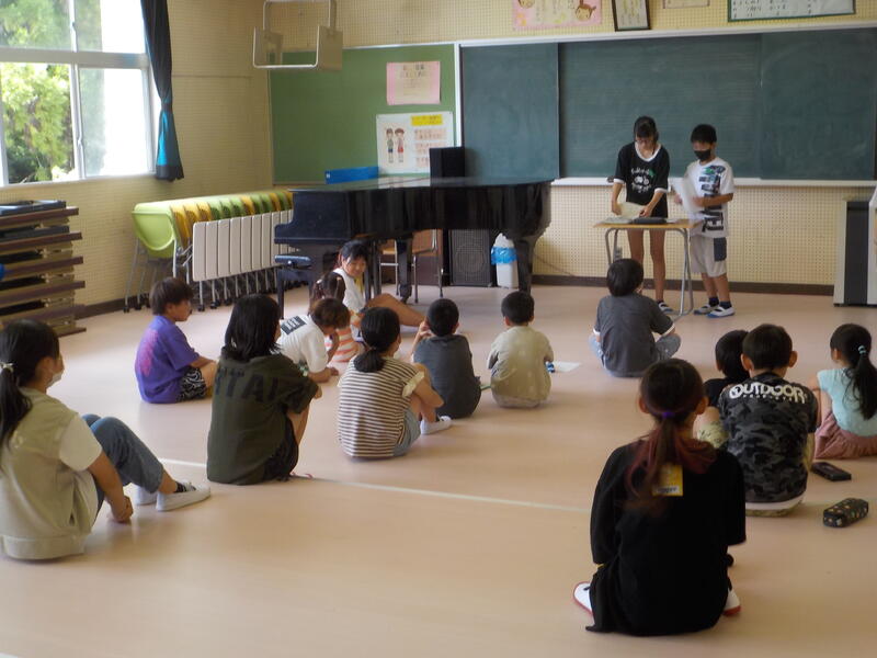 始業式では、まずそれぞれの学年の代表の子たちが、夏休みの思いでや2学期に頑張ることの発表をしました! みんな上手に話しました
