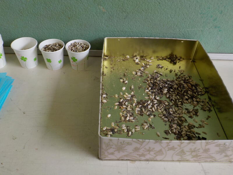 畑にできたひまわりの種の数を数えました! たくさんあって、小さくて、もう大変な作業でした