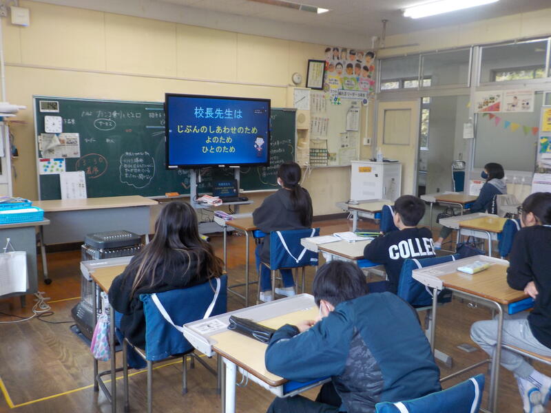 4年生は、国語の物語の学習で、静かにお話を聞いていました