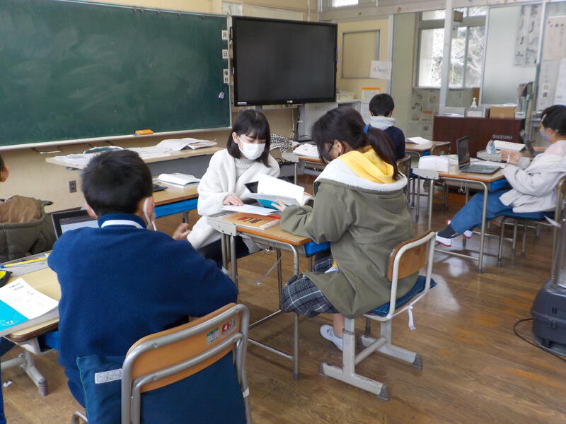 5年生は、国語で調べたことを伝えるためにタブレットを使って発表する準備をしていました! 相談しながら頑張っていました