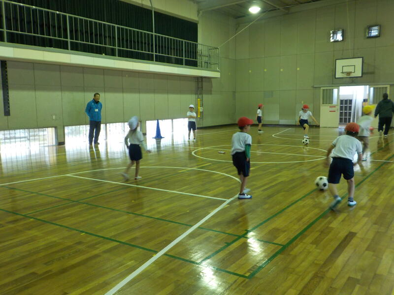 1年生は体育の時間にサッカーボールを蹴る練習をしていました! 見ていると、だんだん上手に蹴ることができるようになって、びっくりしました