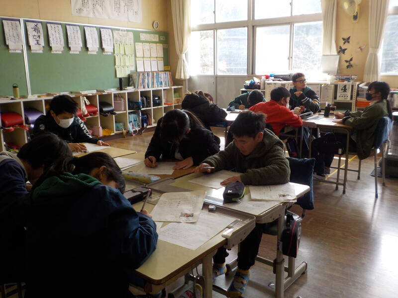 6年生は、久しぶりに全員そろいました! みんなでキャリアパスポートを書きました! 1年をふり返って、友達のにも仲良くコメントを書いていました