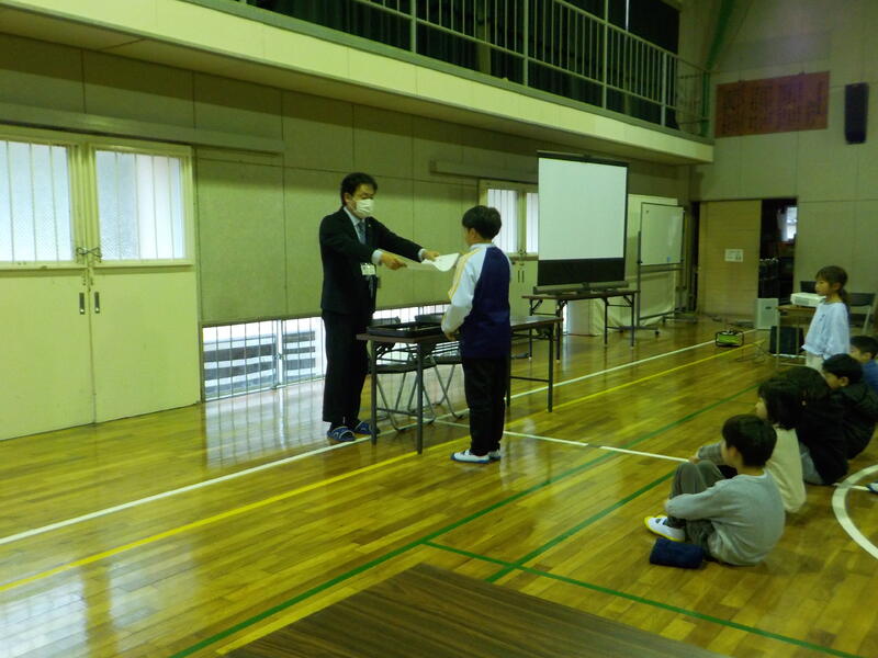 県の絵画展や郡の工作展、校内の漢字名人などの表彰式をしました! 入賞したみなさん、おめでとうございました!
