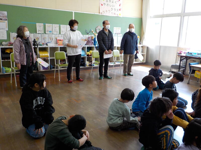 今朝は、今年度最後の読み聞かせに来ていただきました! 緒方さん、どうもありがとうございました! 1年間、読み聞かせに来てくださった方々、大変ありがとうございました