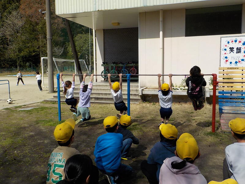 今日の昼休みは、「寒さに負けず、力をつけよう大作戦!」の第3弾、「てつぼうぶらさがり大会」を行いました!!