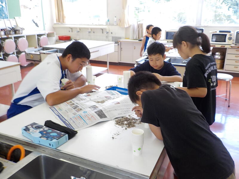 理科の自由研究のまとめで、ひまわりのたねの数を一緒に数えてくれました! 地道な作業でしたが、おかげで3年生も頑張ることができました